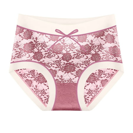 Gubotare Women Panties Seamless Ladies Show Buttocks Wear Fashion Soft Ice Silk Seamless Low Waist Lace Hollow Briefs Red M