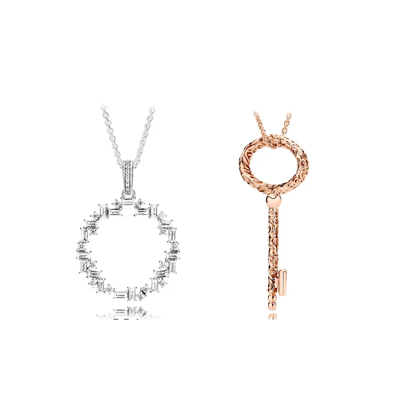 Ожерелье-брелок в стиле «Пан-стиль» из стерлингового серебра 925 пробы с блестящим розовым золотом, цепочка до ключиц, кольцо, ожерелье, корей...