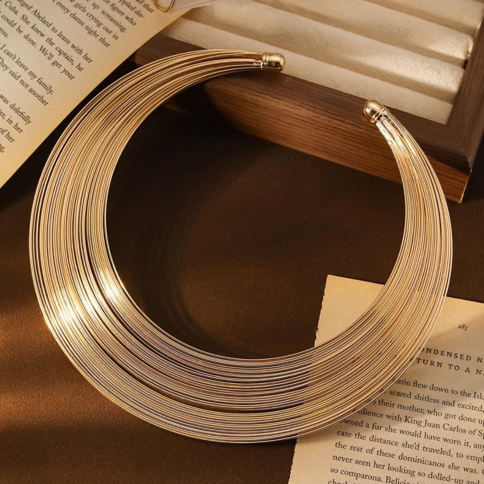 Ожерелье в африканском стиле, Панк-металлическое ожерелье, Многослойное открытое гладкое ожерелье One Size золотой