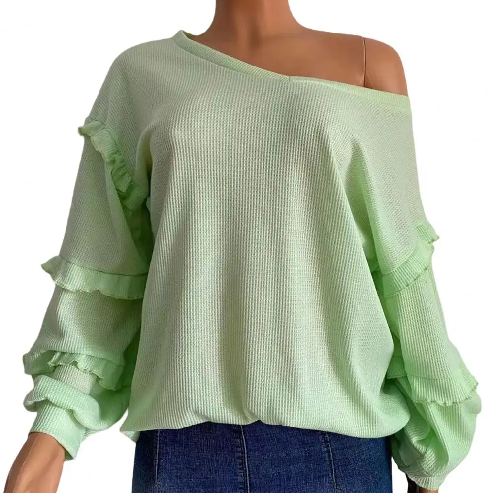 Женская элегантная Осенняя кружевная блузка ZANZEA, модная однотонная офисная рубашка, женские повседневные блузки, рубашка с V-образным вырез...