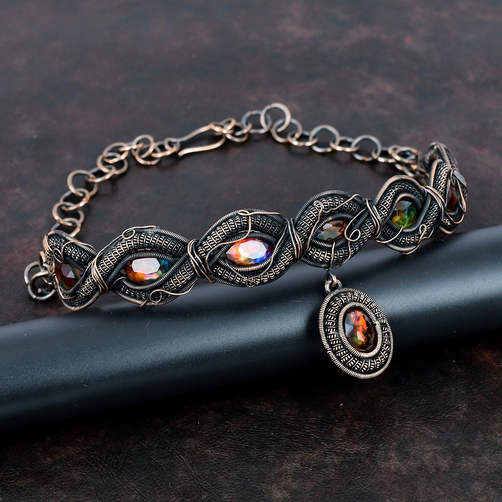 Ожерелье из граненого аммолита с драгоценным камнем, медная проволока, обернутое ожерелье ручной работы, регулируемая цепочка, ожерелье из аммолита, медные ювелирные изделия, подарки для женщин