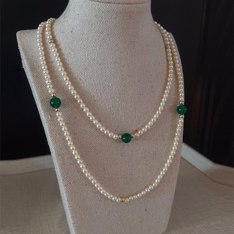 «Ожерелье из зеленого халцедонового стекла с жемчугом — элегантная модная цепочка в китайском стиле»