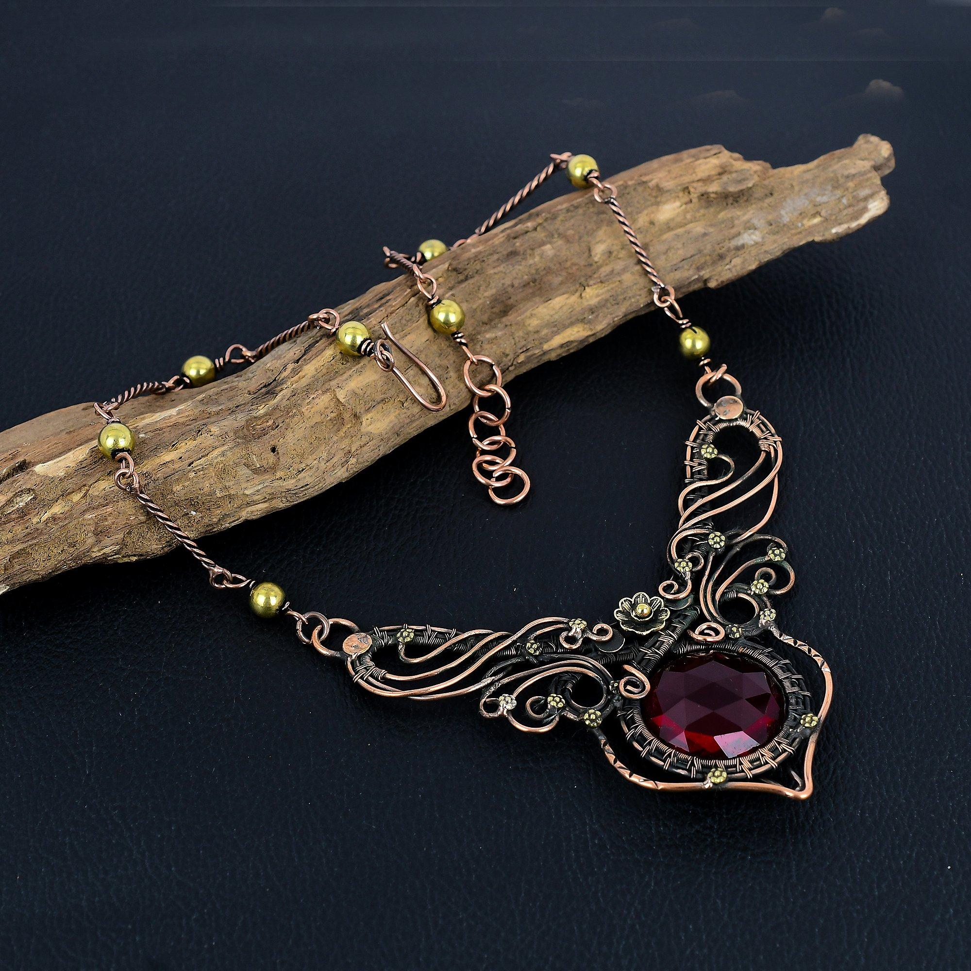 Ожерелье из красного граната, Ювелирное изделие из драгоценного камня, Ожерелье, обернутое медной проволокой 999 пробы, Ювелирное изделие ручной работы, Ожерелье с камнем рождения, Подарок для него