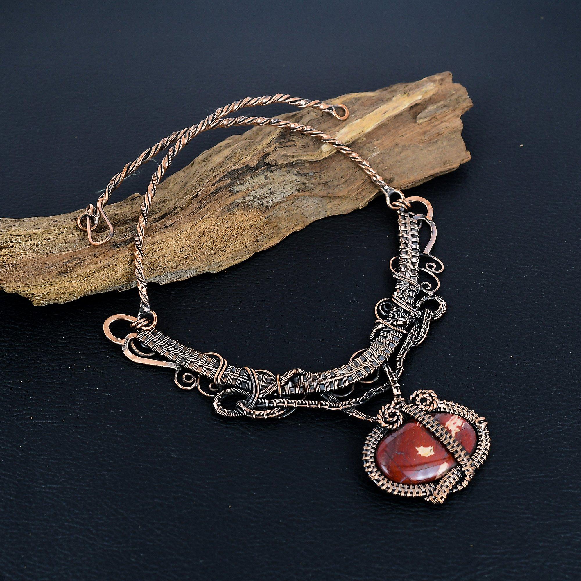 Ожерелье из красной речной яшмы, Ожерелье, обернутое медной проволокой 999 пробы, Ювелирные изделия из драгоценных камней, Ожерелье ручной работы, Удивительные украшения, Подарок для нее