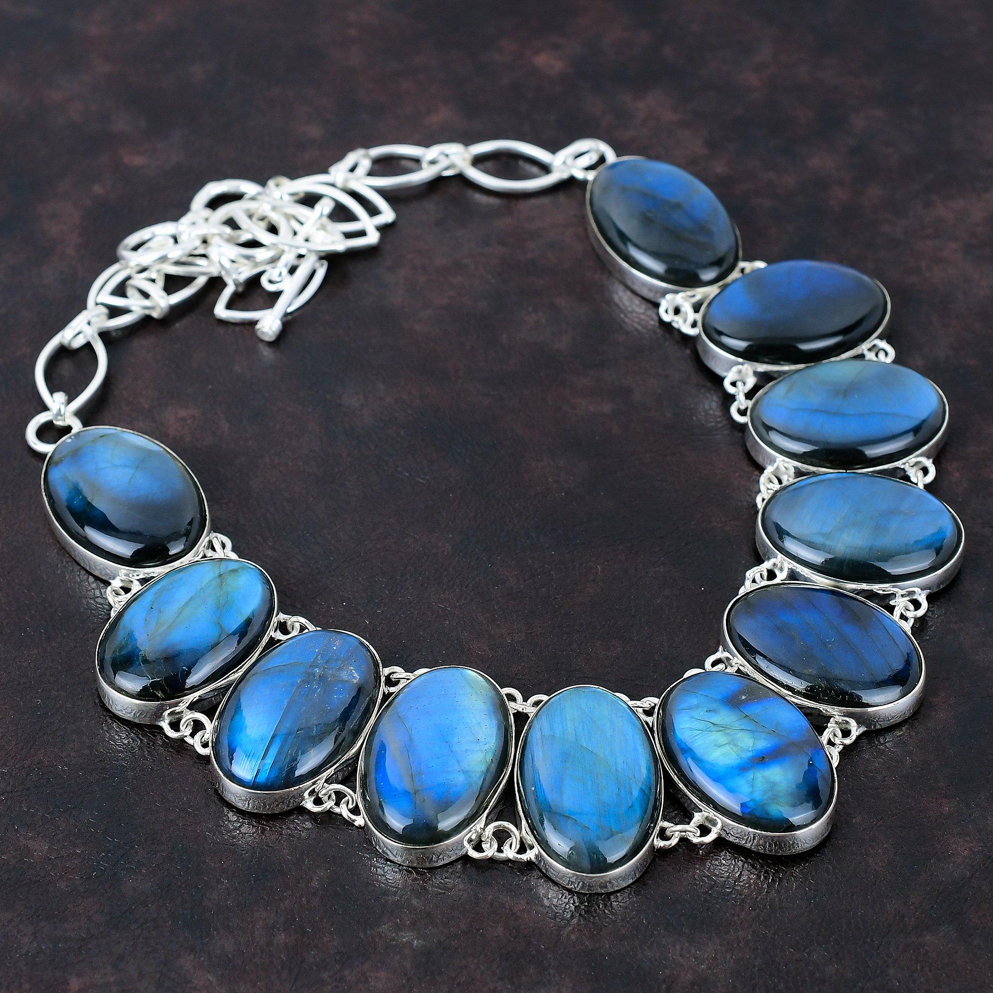 Ожерелье из лабрадорита, ожерелье из стерлингового серебра 925 пробы, регулируемая цепочка, ожерелье, ювелирные изделия из лабрадорита, настоящий драгоценный камень, ювелирные изделия ручной работы, подарок для нее Adjustable