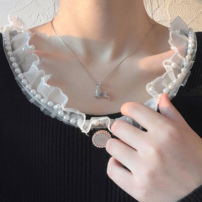 Ожерелье из лунного камня с оленем, женская милая цепочка на ключицу