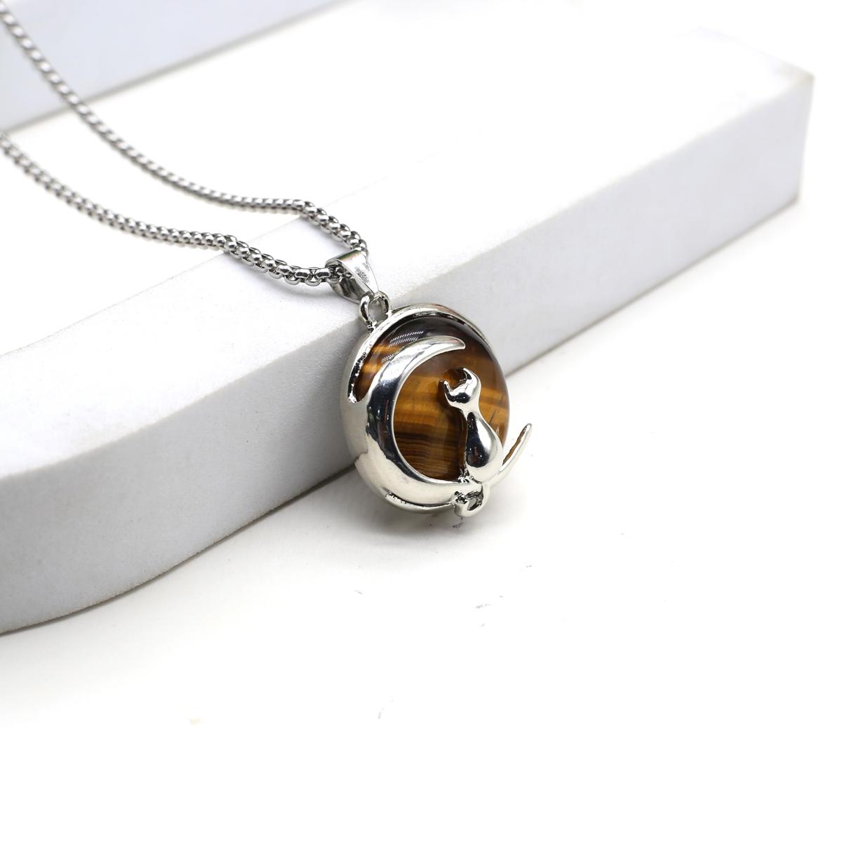 Ожерелье из натурального камня лазурит/аметист в форме кошки ожерелье кулон для женщин подарок на день рождения цепочка 60 см 60cm