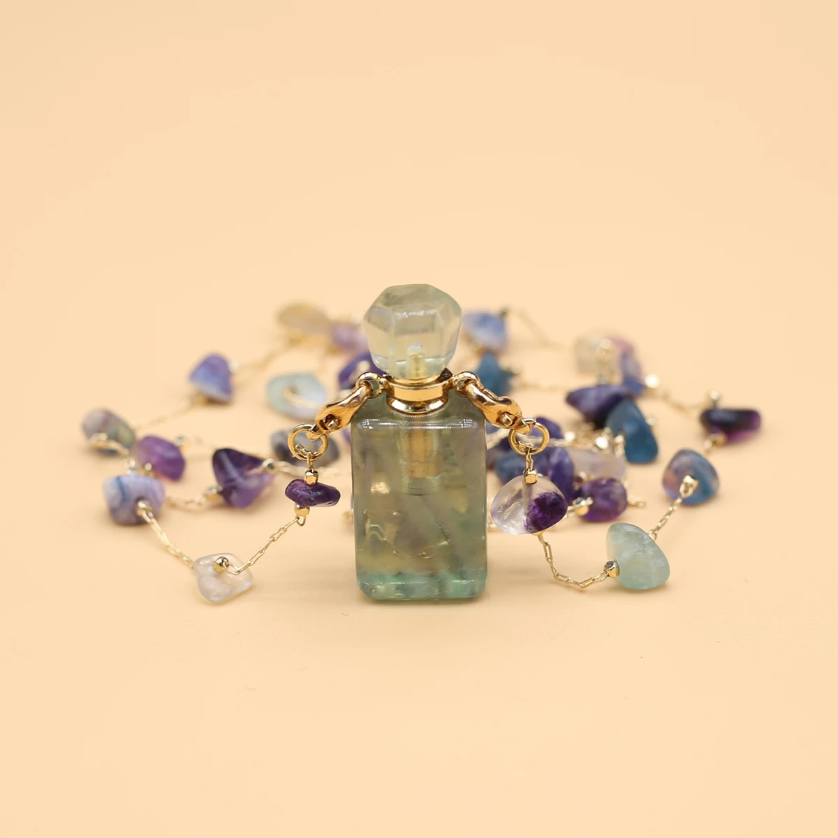 Ожерелье из натурального камня, флюоритовая бутылка, Длинная каменная цепочка с кристаллом для вечерние ринки, подарок на день рождения, 18x34...