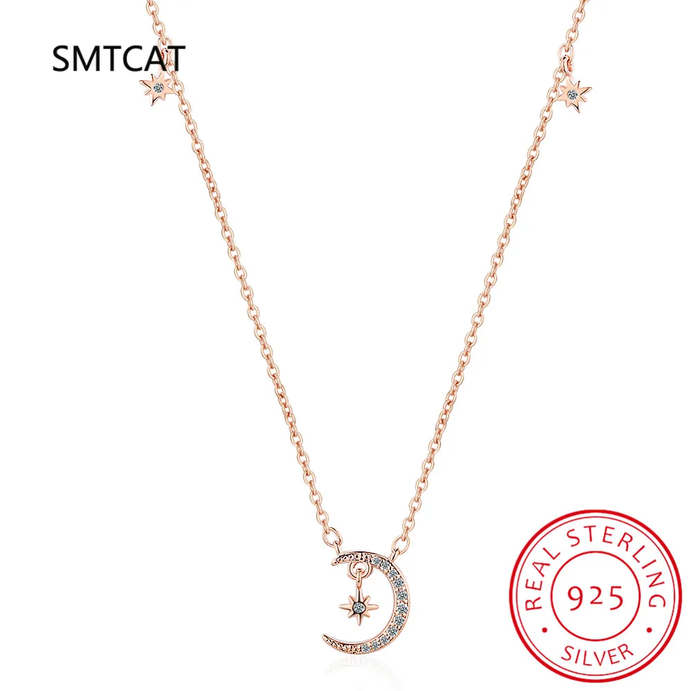 Ожерелье из серебра 925 пробы с Луной и подвеской в виде шестиконечной звезды с прозрачными бриллиантами, простая модная цепочка до ключиц, ж...