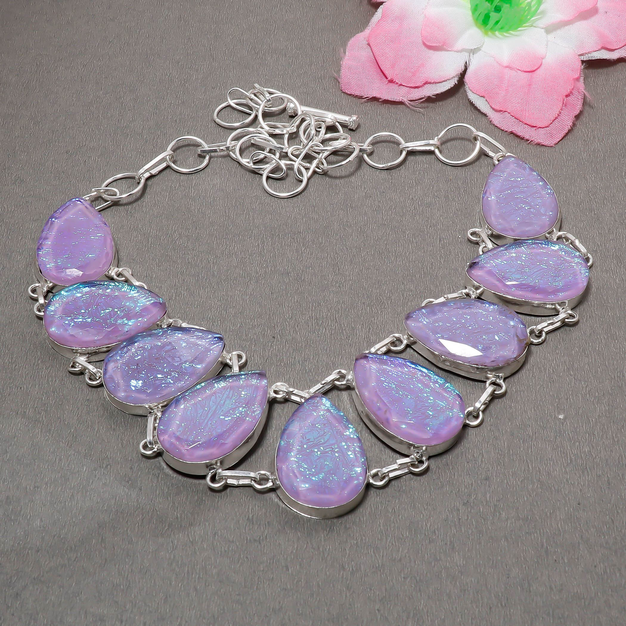 Ожерелье из серебра 925 пробы с фиолетовым триплетным огненным опалом, 18 дюймов