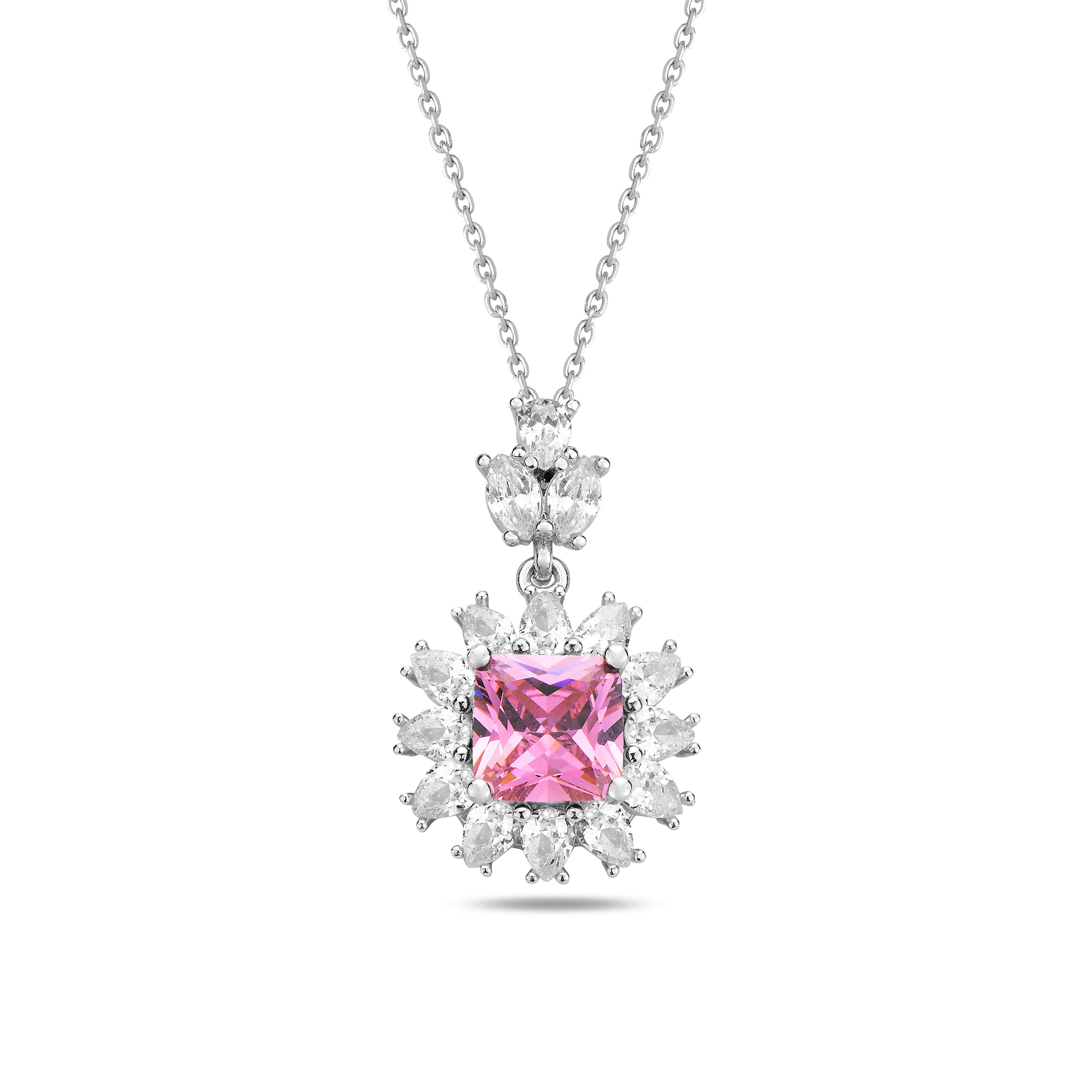Ожерелье из стерлингового серебра 925 пробы с розовым кварцем, ожерелье из розового кварца и циркония, элегантное и женственное ювелирное украшение, идея подарка для особых случаев Pink Quartz серебряный