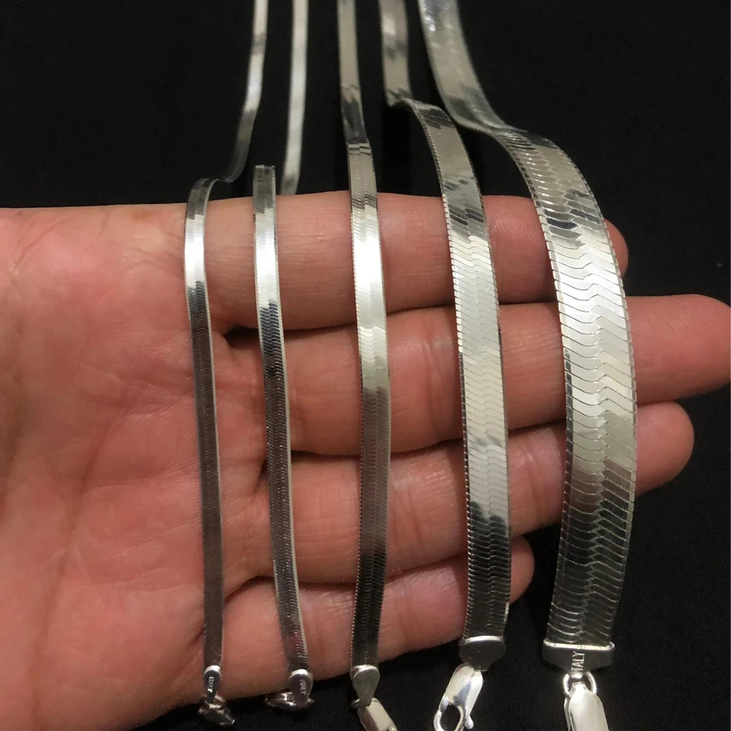 Ожерелье из стерлингового серебра 925 пробы, 3 мм, 3,5 мм, 4,5 мм, 6,7 мм, 10,7 мм, гибкая многослойная цепь, плоская змеиная цепь, итальянское ожерелье 3 mm / 35 cm серебряный