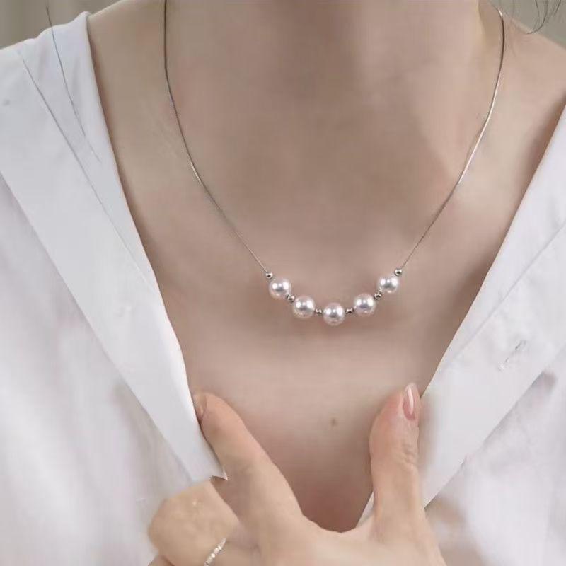 Ожерелье из титановой стали цвета розового жемчуга - Женская роскошная модная цепочка для ключицы Electroplated