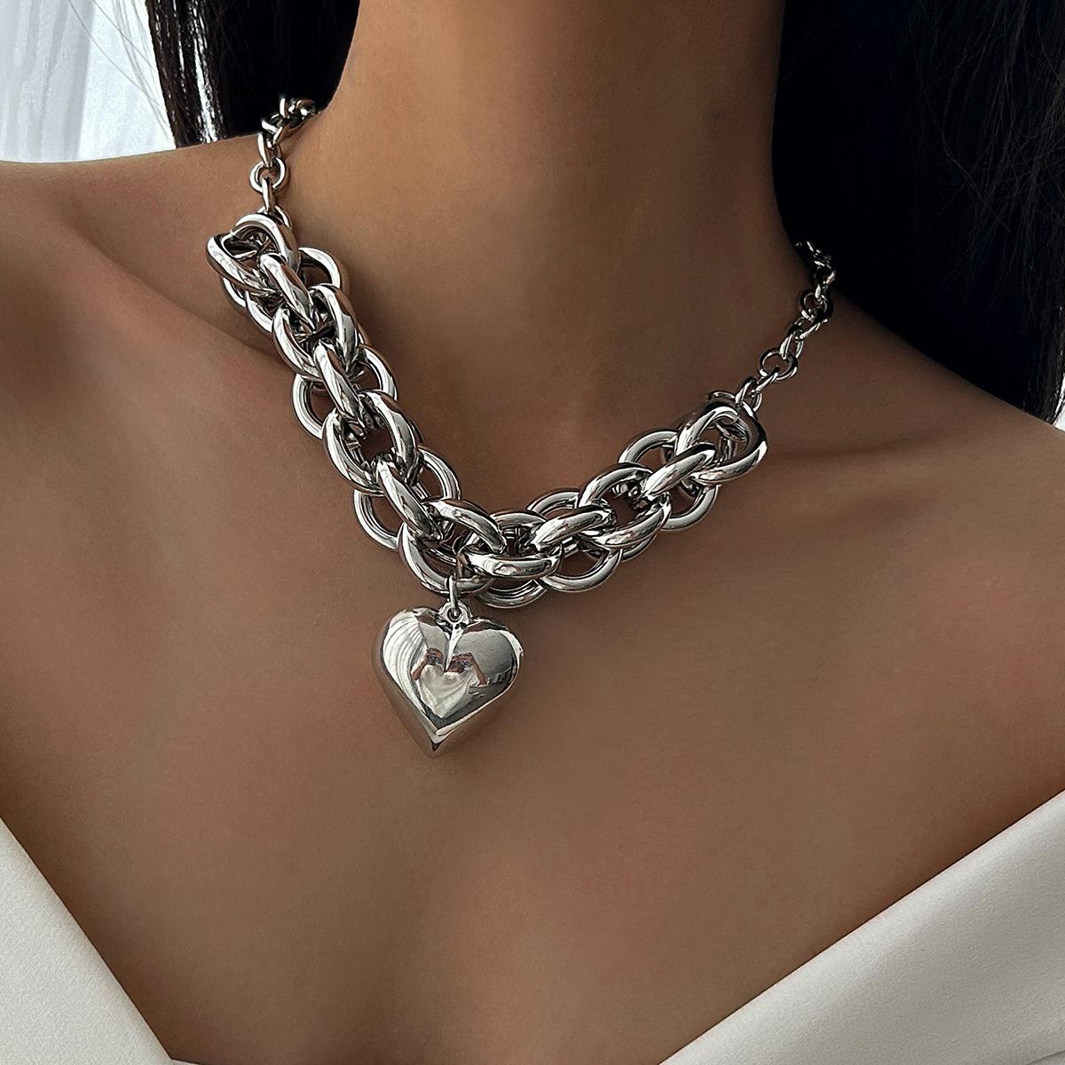 Ожерелье из толстой металлической цепи в стиле хип-хоп, панк, женское, подвеска в виде сердца с холодным ветром и ключицей