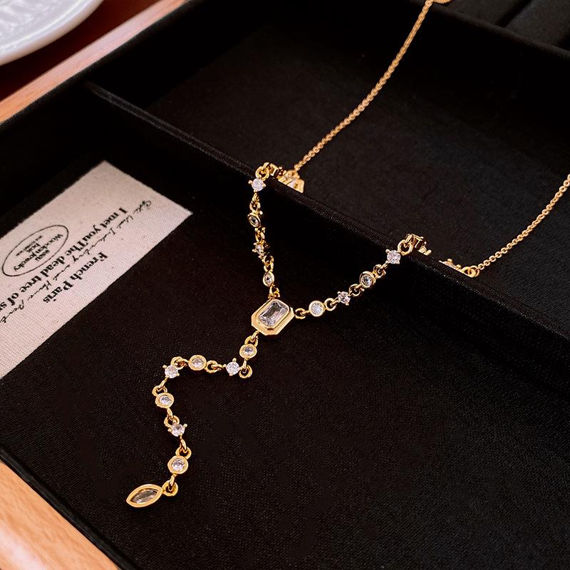 Ожерелье-кисточка из циркона с золотым покрытием - Европейская и американская легкая роскошь, цепочка для свитера для женщин
