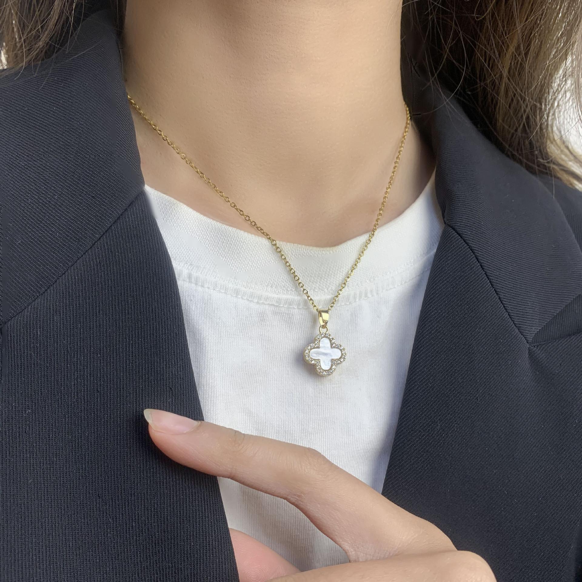 Ожерелье не выцветает, Женское летнее двустороннее ожерелье с четырехлистным клевером, Женское ожерелье с высококлассным темпераментом, Легкая роскошная цепочка для ключицы