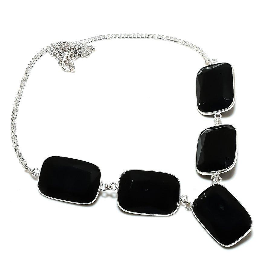 Ожерелье ручной работы из стерлингового серебра 925 пробы с натуральной черной шпинелью 18 дюймов r2D78