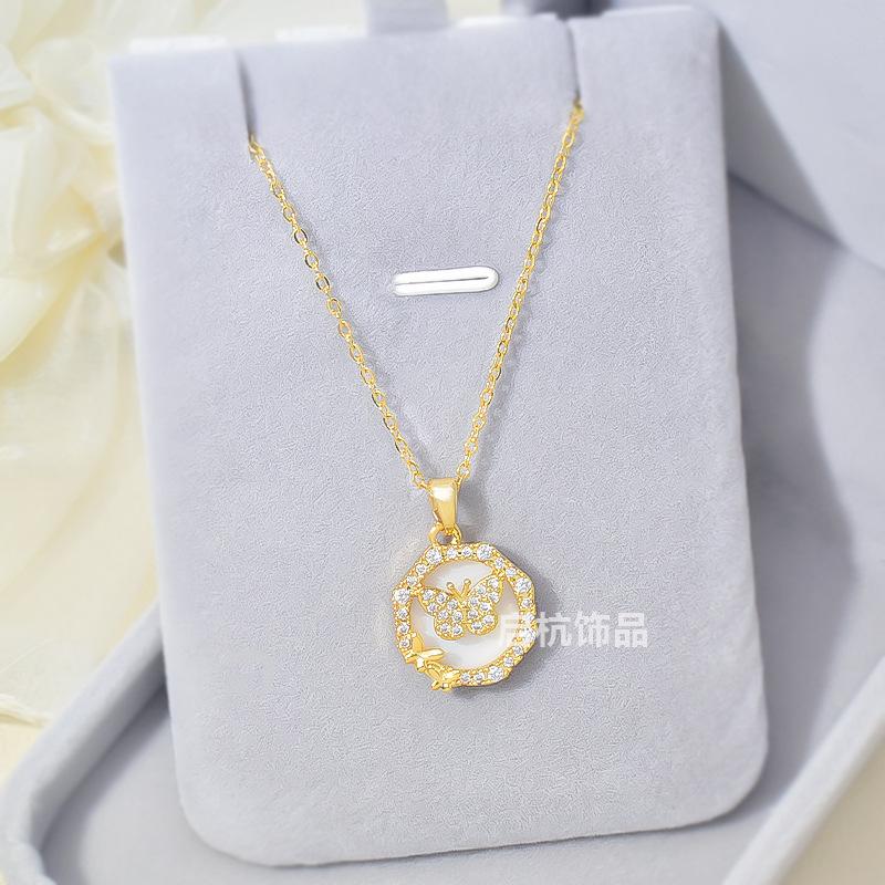 Ожерелье с бабочкой Женская индивидуальность Универсальный тренд Темперамент Инкрустированная цирконием круглая ключичная цепочка ювелирные изделия
