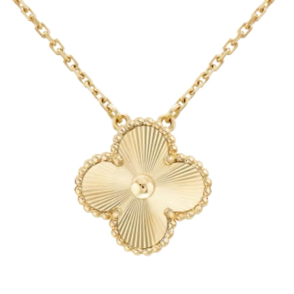 Ожерелье с клевером K18 из желтого золота 18 карат с четырехлистником в подарок с гравировкой для женщин (С. (Гильоширование))