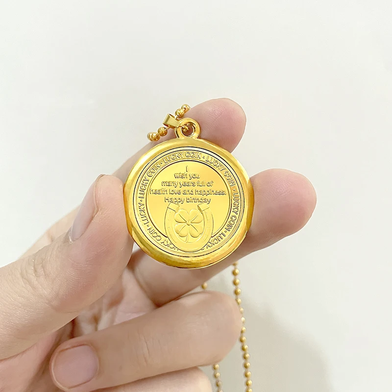 Ожерелье с памятными монетами на день рождения, креативная позолоченная подвеска, диаметр 30 мм, цепочка с шариками, ювелирные изделия