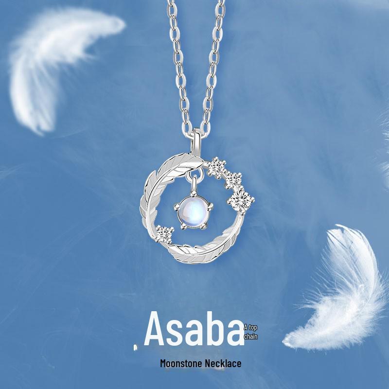 Ожерелье с подвеской в виде пера лунного камня - стильная короткая цепочка на ключицу для женщин