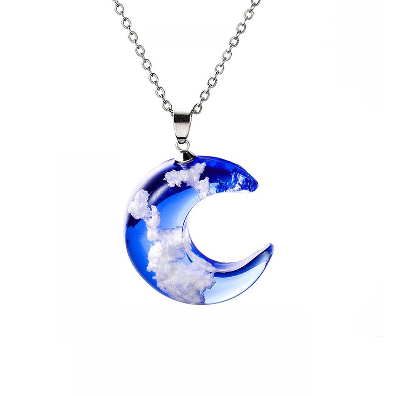 Ожерелье с подвеской в виде шара из смолы в виде луны, голубое небо, белое облако, цепочка, ювелирные изделия as the picture