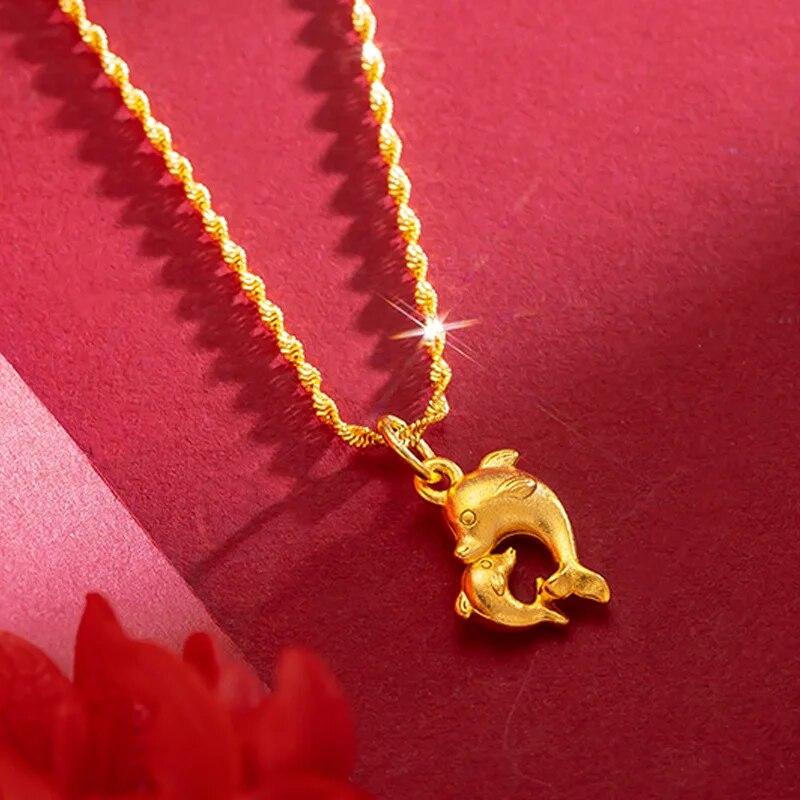 Ожерелье с подвеской в форме дельфина из чистого золота 14 карат для женщин, ожерелья для свадьбы, дня рождения, цепочки, изысканные подарки, ювелирные изделия