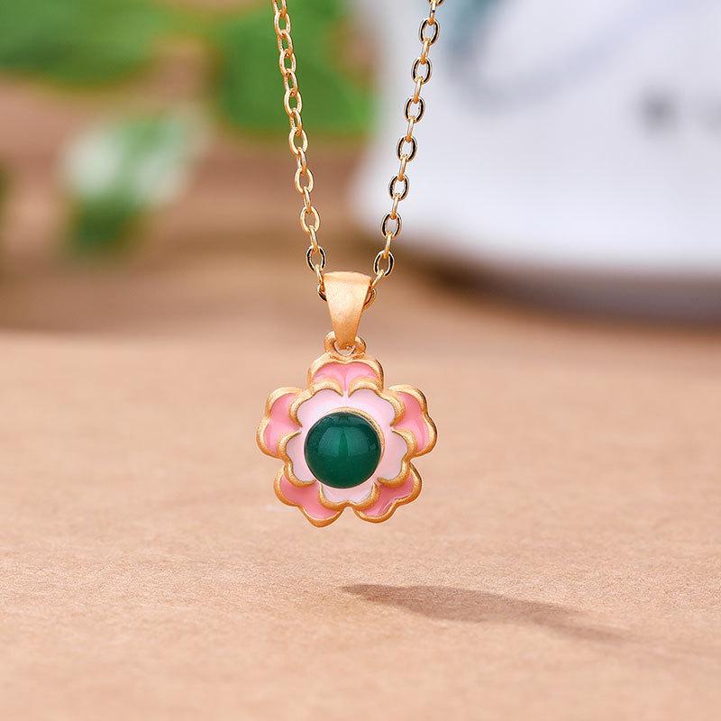 Ожерелье с подвеской из нефритового лотоса, позолоченная цепочка 18 карат, изящный драгоценный камень