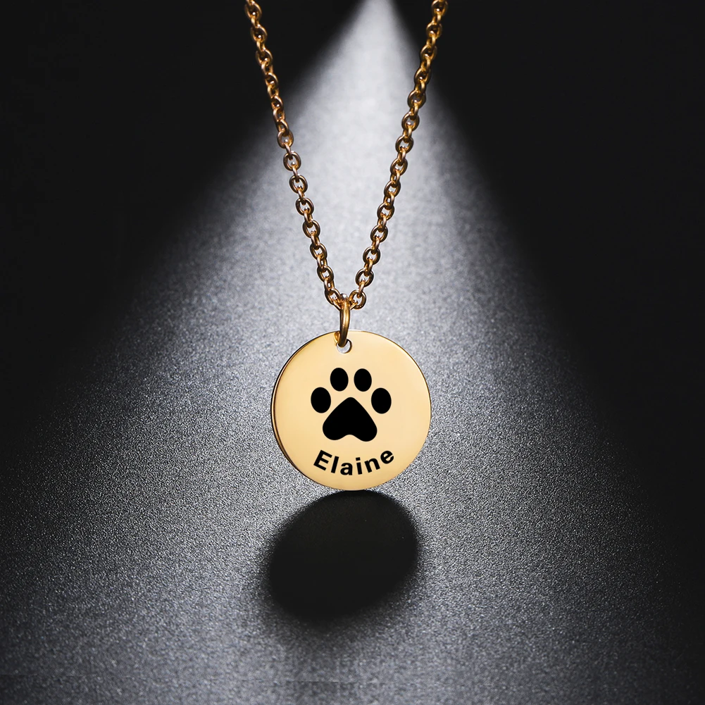 Ожерелье с собакой, бирка в виде лапы, щенок, индивидуальное имя, маленькая цепочка из нержавеющей стали цвета розового золота, подарок для ж...