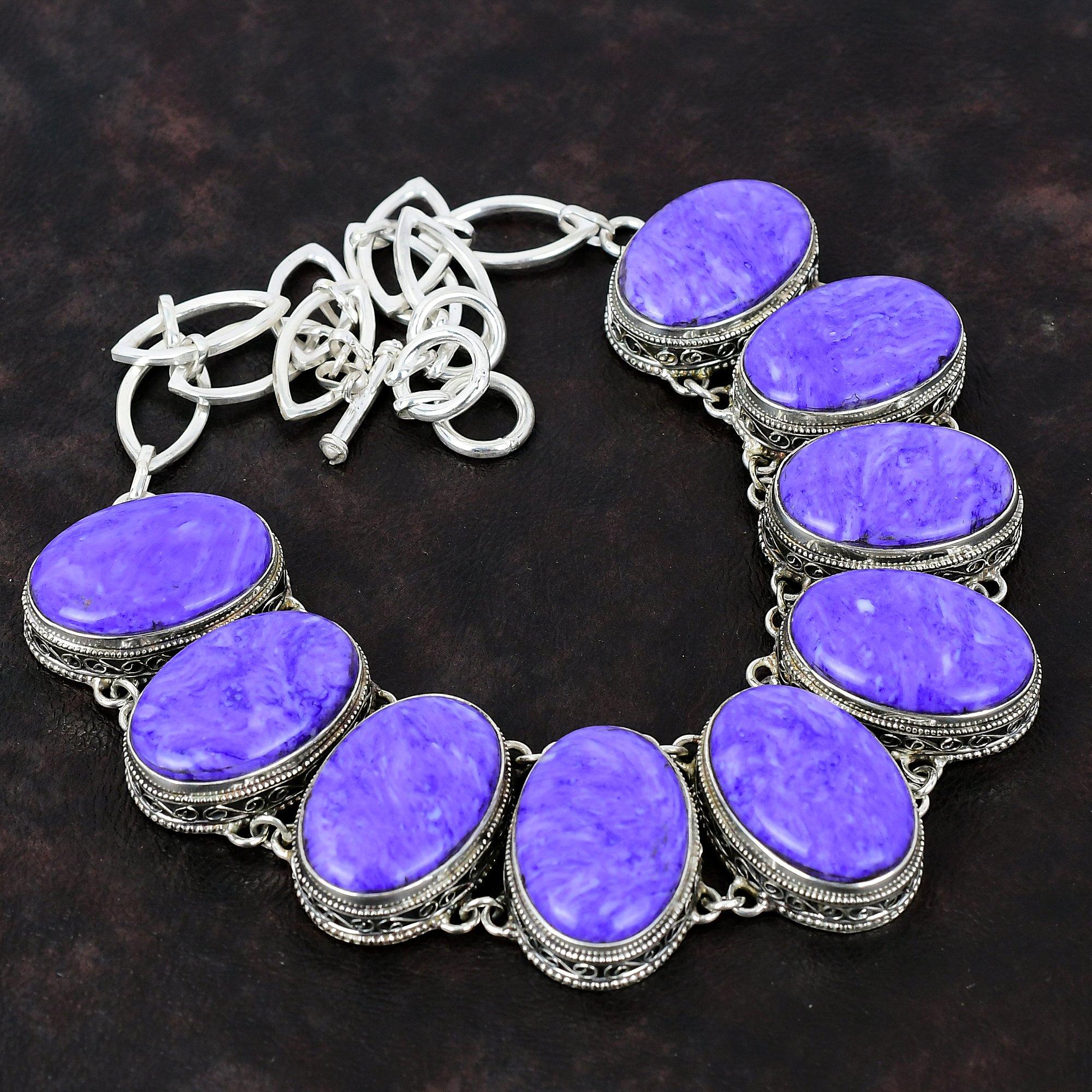 Ожерелье с чароитом, винтажное ожерелье, ювелирные изделия из настоящего драгоценного камня, ожерелье из стерлингового серебра 925 пробы, регулируемое ожерелье-цепочка, ювелирные изделия ручной работы для подарка Adjustable