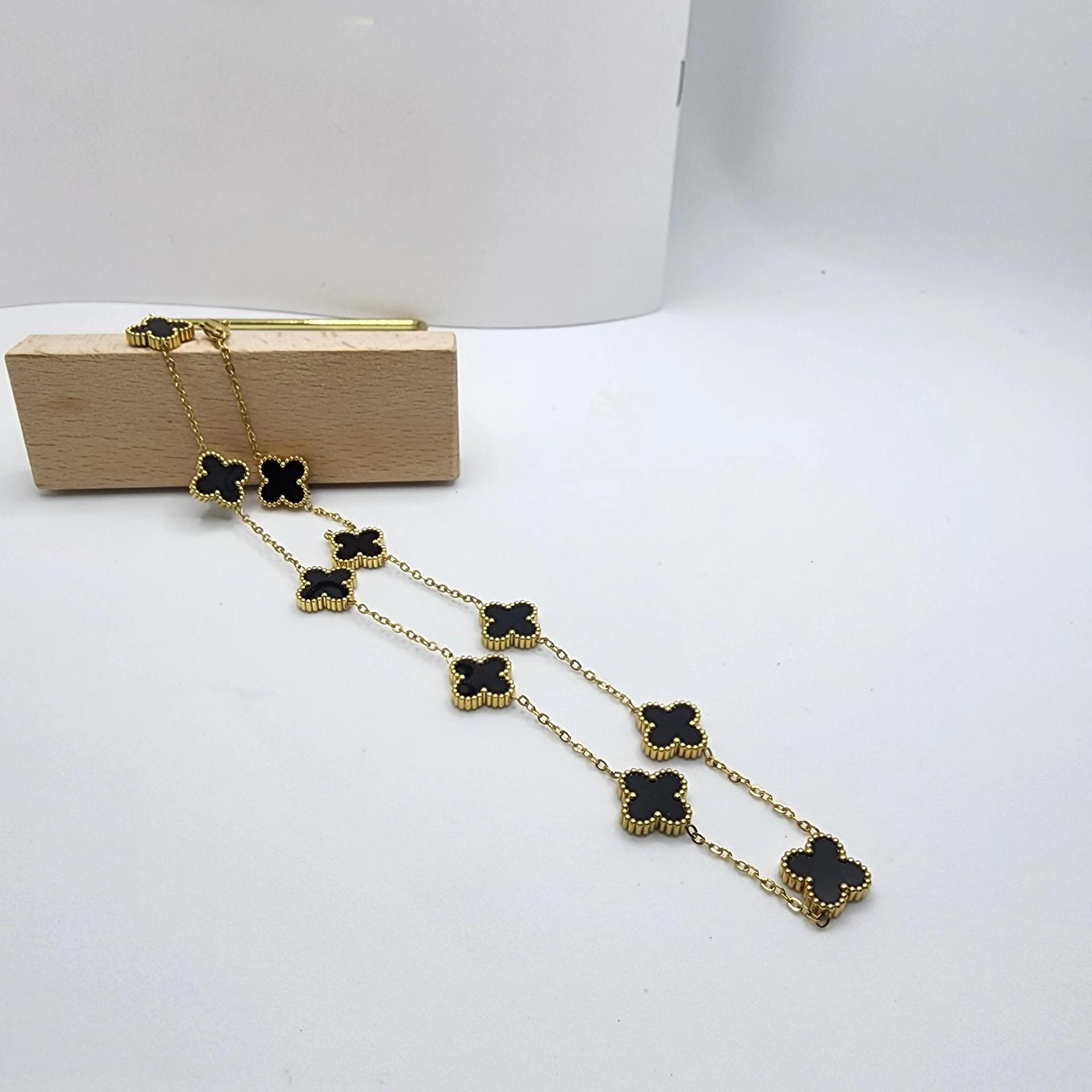 Ожерелье с четырьмя листочками клевера, легкая роскошная простая цветочная ключичная цепочка, женское ожерелье Haute Sense 18K чёрный