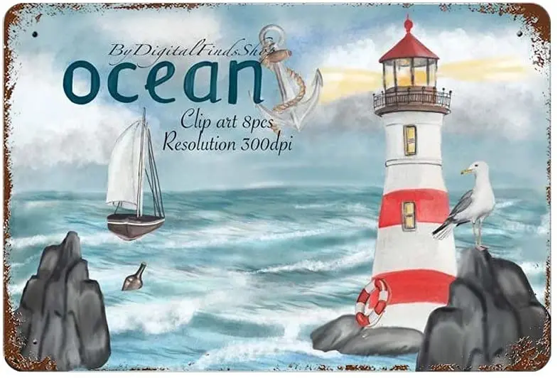 Винтажная металлическая Оловянная вывеска, украшение для настенной панели, 12x8 дюймов, Акварель для океана, подходит для баров, ресторанов, к...
