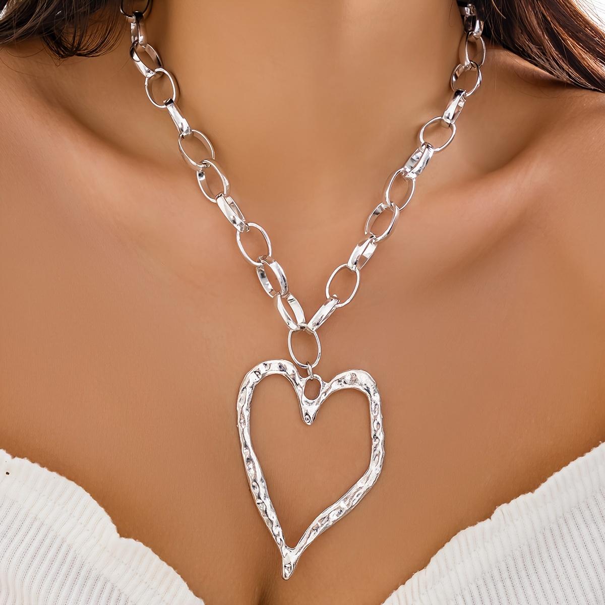Ожерелье-цепочка в форме сердца с преувеличенным узором, большое ожерелье с любовью, сплав, романтические украшения для женщин, подарок на День святого Валентина серебряный
