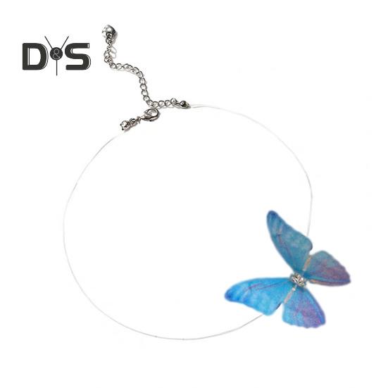 Ожерелье-чокер в виде бабочки, бохо, невидимая цепочка, бабочка, фея, чокер, прозрачная леска, ожерелье для женщин и женщин синий