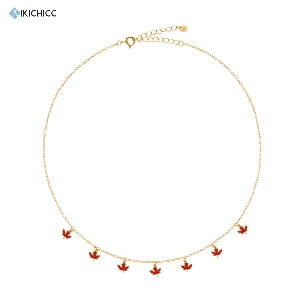 Ожерелье-чокер KIKICHICC, из серебра 925 пробы, золотистого цвета, с несколькими кленовыми листьями, с красной эмалью, подарочное Ювелирное Украше...