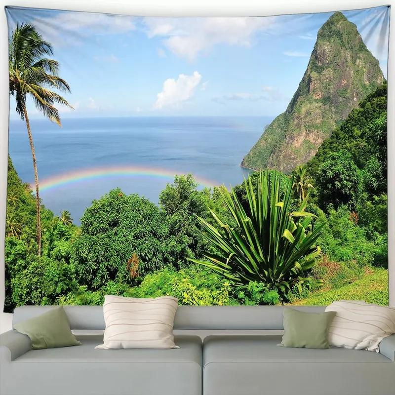 Озеро Розовый Цветок Сцена Гобелен Спальня Гостиная Гобелен Украшения Дома Настенный Гобелен 100x75cm