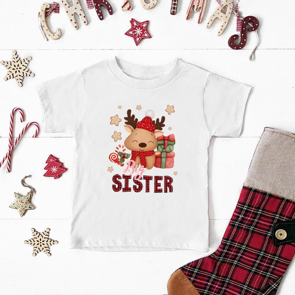 Олень Старший Брат Младшая Сестра 3D Принт Детская Футболка Рождественская Вечеринка Наряд для Мальчиков и Девочек Праздничная Футболка с Коротким Рукавом для Брата и Сестры 110