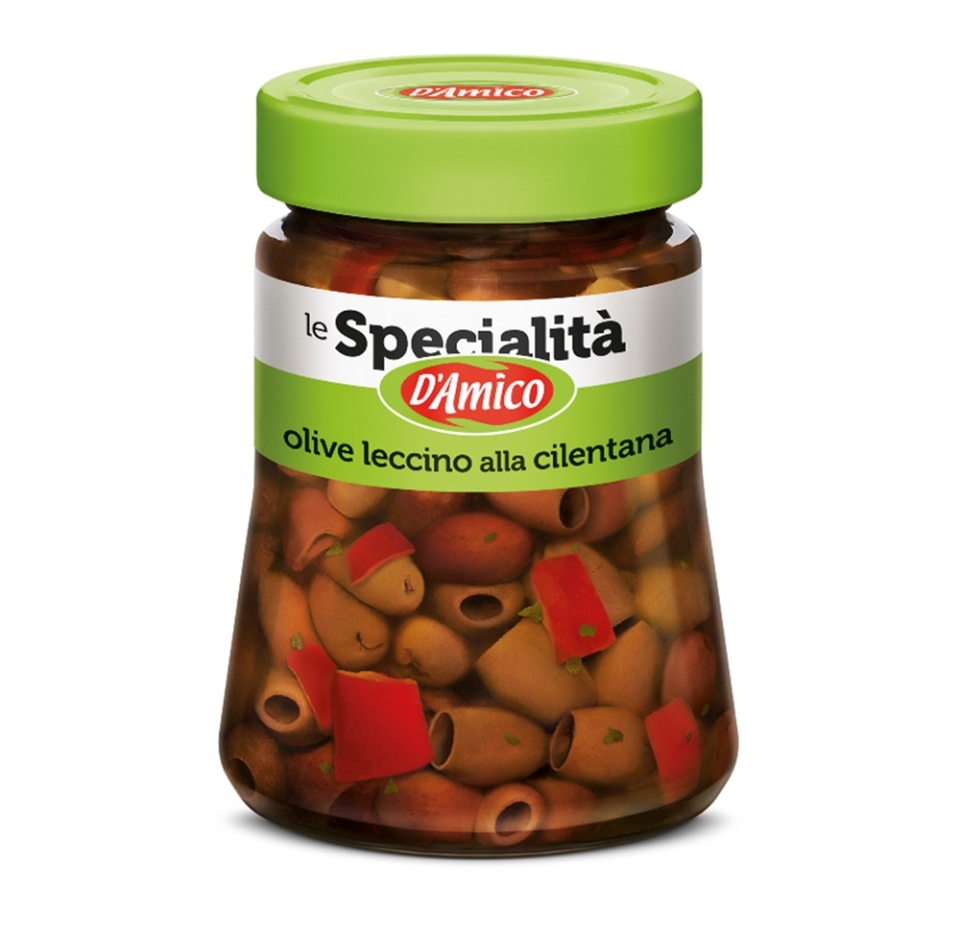 Оливки D'Amico зеленые без косточки Леччино Алла Чилентана в масле со специями 270г, Италия