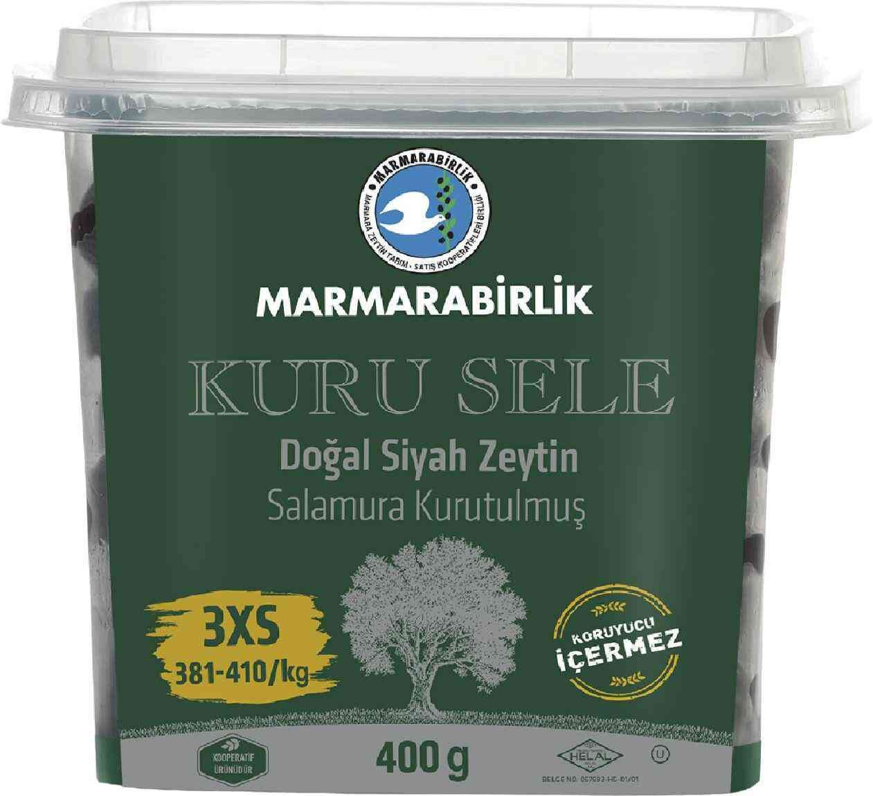 Оливки MARMARABIRLIK черные натуральные вяленые с косточкой в масле, 410г