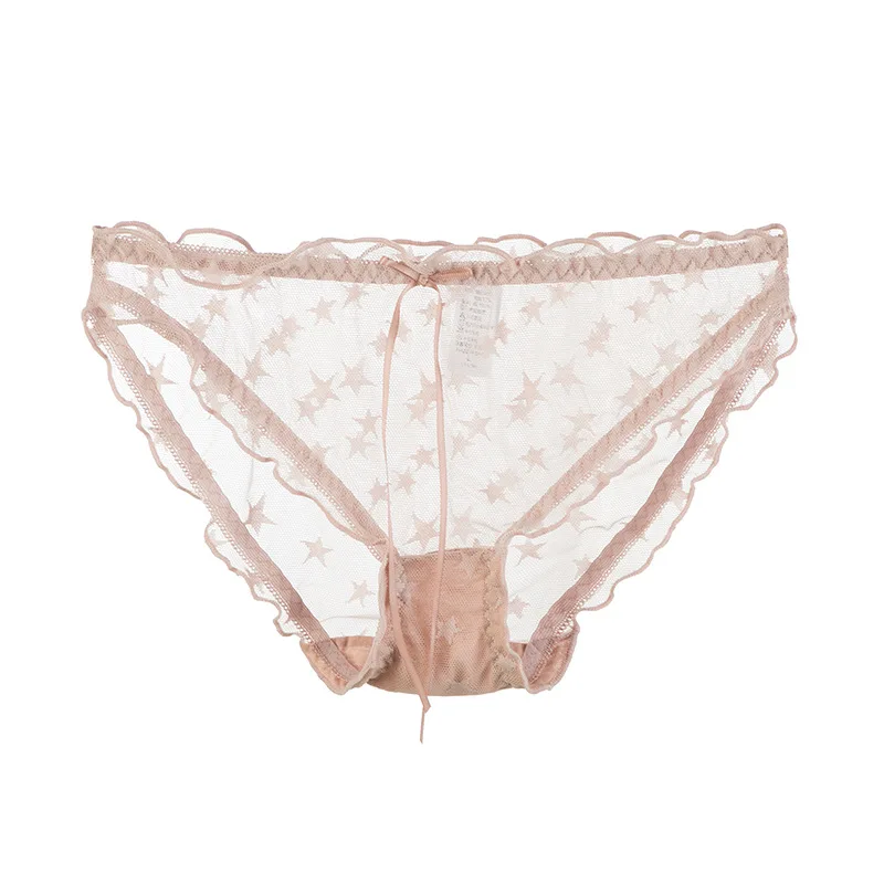 Summer Thin Sweet Maid Star Panties Women Waistline Silk Loli Cute Lady Briefs Sexy Lace Lucency Pink Satin Panty Women