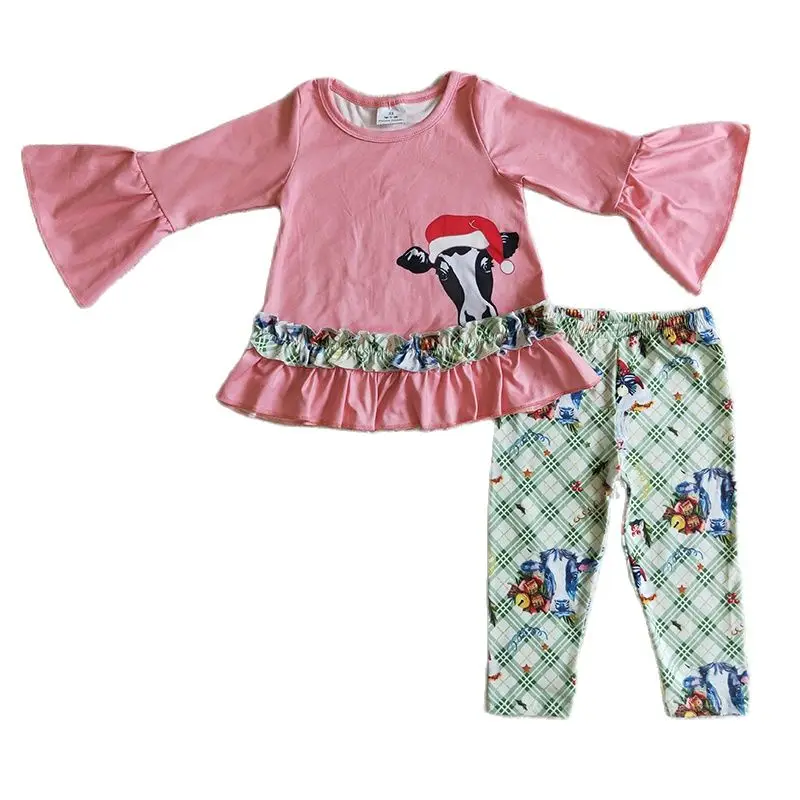 Оптовая продажа, Детские наряды, зимняя Рождественская модная одежда для маленьких девочек, розовая шапка с оборками из коровьей кожи, руба...