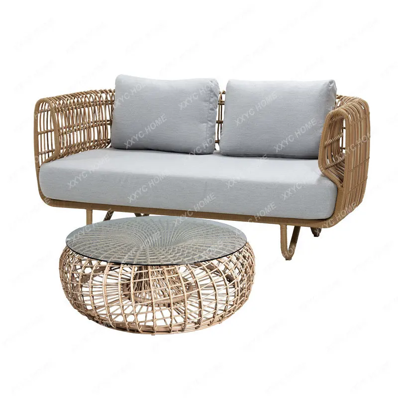 Outdoor Chair Sofa Combination Living Room Rattan Woven Sofa Three-Piece and Five-Piece Set Bamboo Rattan Woven Furniture