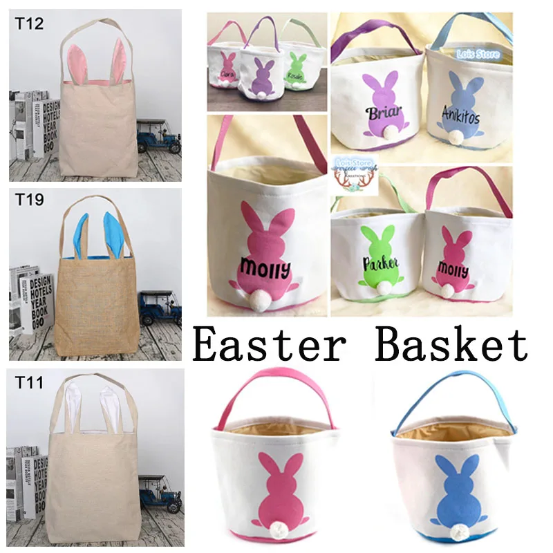 Оптовая продажа, 25 шт./лот, милая Пасхальная корзина в виде кролика, 40 стилей, Холщовая Сумка-мешок с монограммой, сумка-мешок, корзина для яиц...