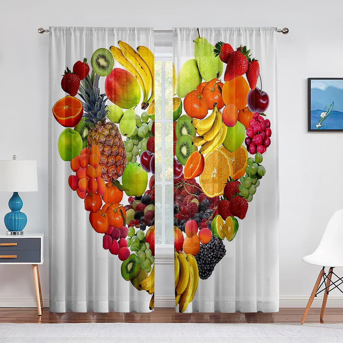 Оранжевые фруктовые розовые прозрачные шторы из вуали для гостиной, спальни, современные милые цитрусовые зеленые листья, тюлевые шифоновые шторы, украшение 1 PCS W100XH250cm&Grommet Top