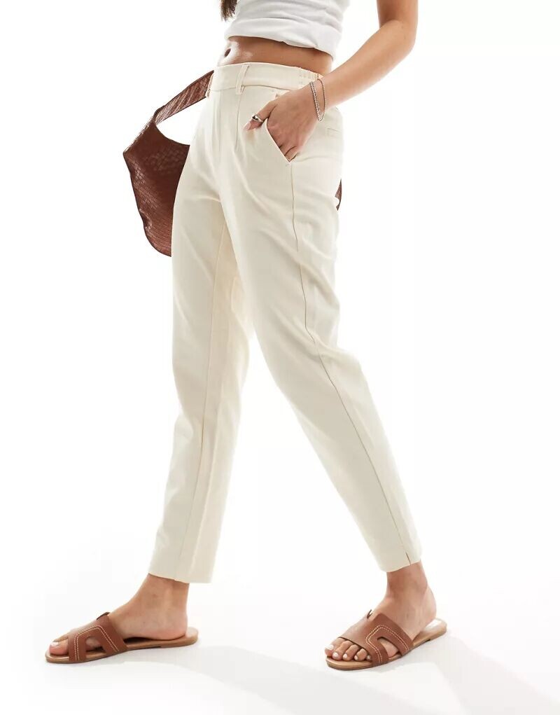 Объект – Элегантные укороченные брюки кремового цвета приталенного кроя Object