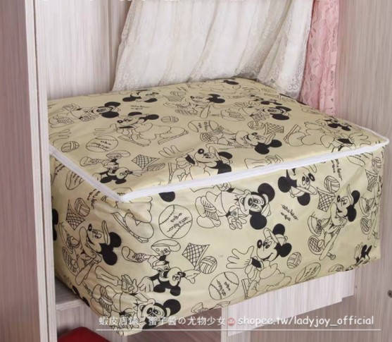 Органайзер для хранения вещей, одеял, подушек, постельного бельяКофр складной для хранения идеально подходит для эргономичного хранения вещей — одеял, пледов, подушек и других объемных вещей. Ваши вещи будут не только упорядочены, но и защищены от пыли и возможных загрязнений. Стильная расцветка данного органайзера для вещей легко впишется в любой интерьер, а ручка сбоку поможет легко транспортировать его в нужное место. Застегивается на молнию.Размер: 68*50*30смЦвет: бежевый с микки Ткань: нейлон\