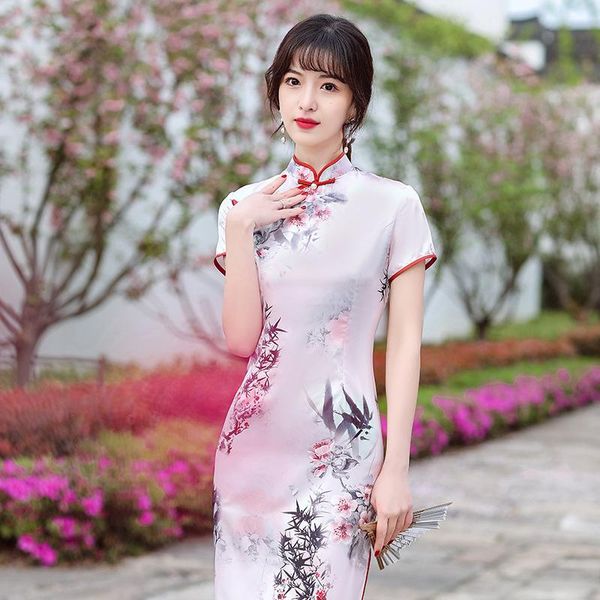 ethnic clothing chinese style traditional cheongsam for women mid-length girly retro slim improved dress daily young standing collar, Red