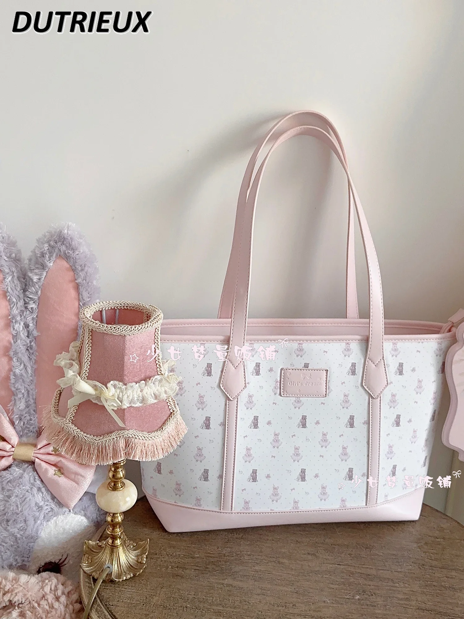 Оригинальная большая сумка с кроликом и медведем для девочек, милые ручные сумки на плечо, большая вместительная студенческая сумка с принтом, женские сумки с героями мультфильмов