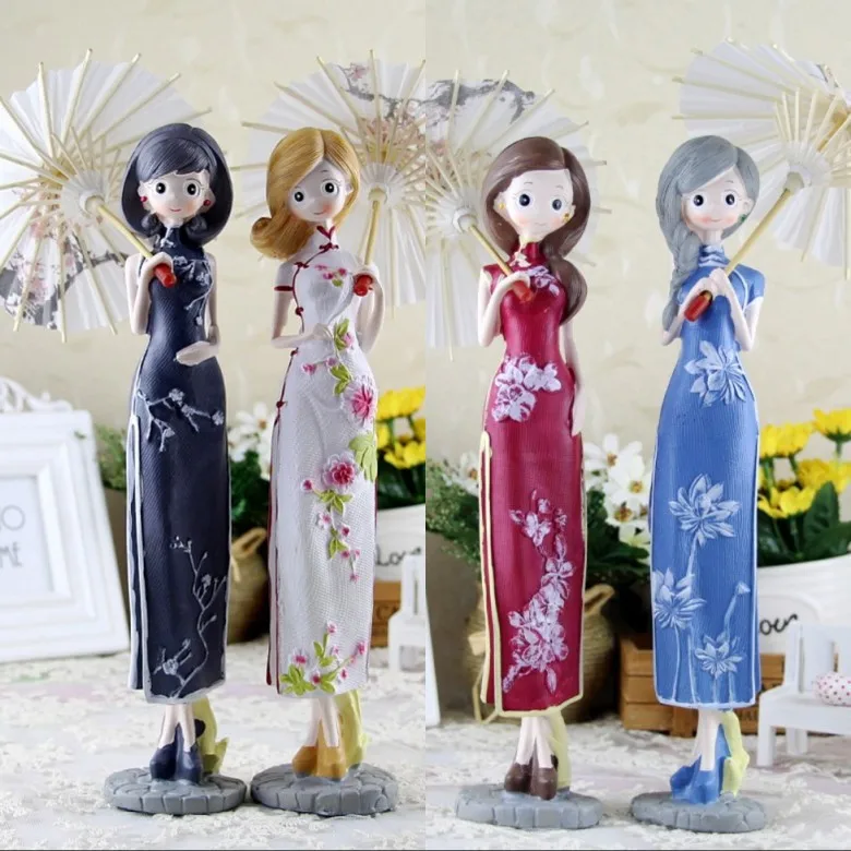 Оригинальное украшение для дома, Ципао в китайском стиле, украшение из смолы, масляный бумажный зонтик, красивое Ретро Ремесло, маленькое ук...