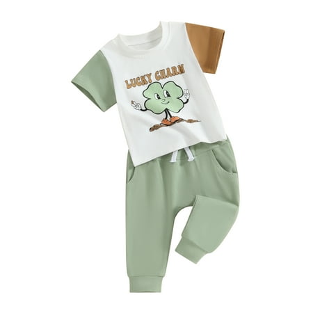 Mioliknya Baby Boys Pants Set Short Sleeve Cartoon Shamrock Print T-shirt Pants
